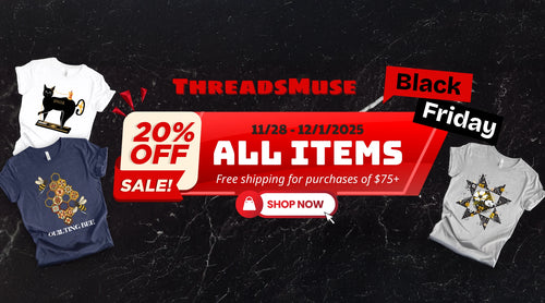 ThreadsMuse creates and sells shirts inspired by quilting and sewing culture, featuring witty sayings and elegant illustrations of stitches and patterns that celebrate the craft you love.