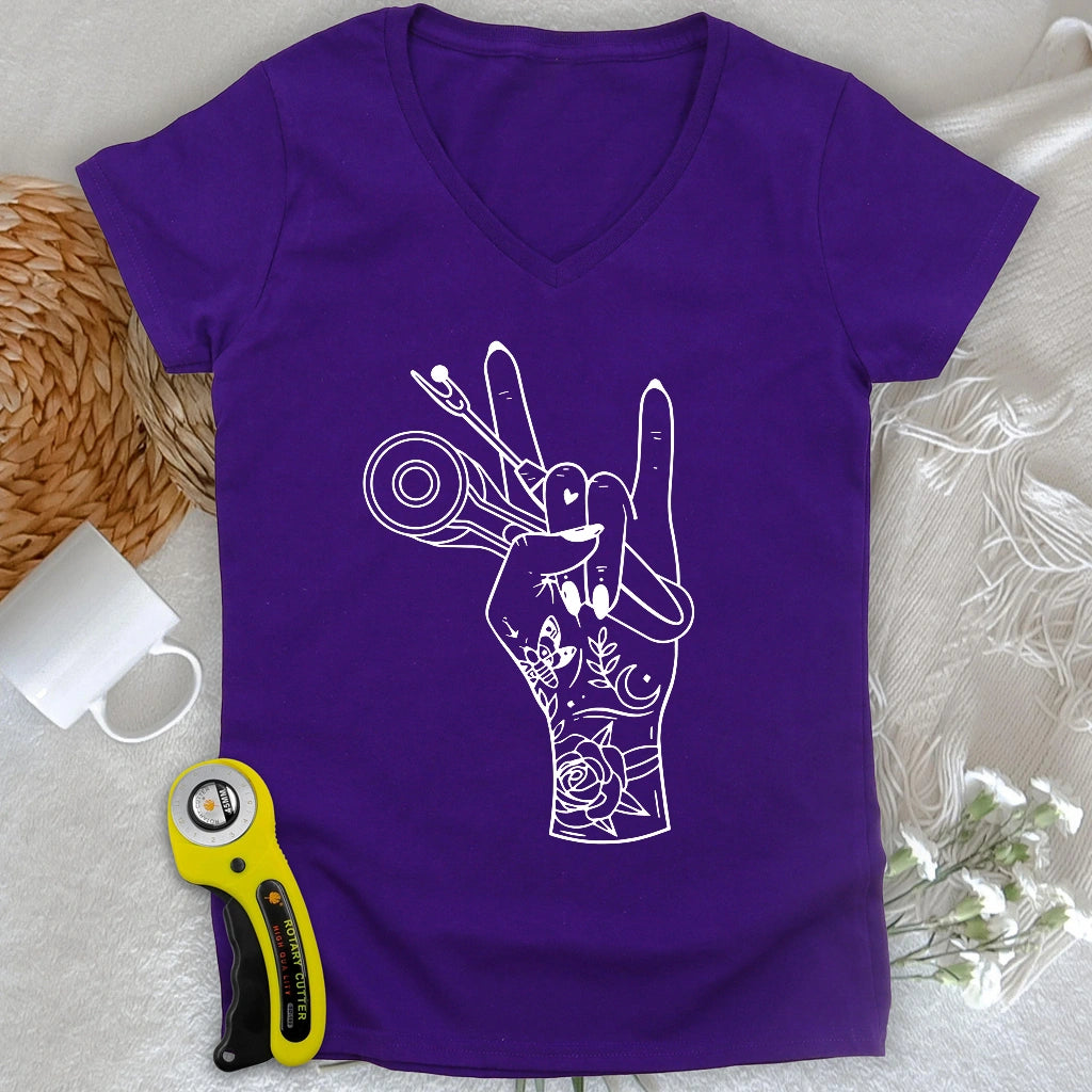 Sewing Rock Lady V-neck